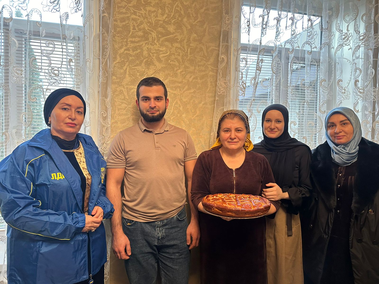 Депутат Хасавюртовского городского собрания от ЛДПР Жанна Салиева посетила семьи участников СВО, проходящих реабилитацию после ранений, и угостила их пирогами «ЛДПР».