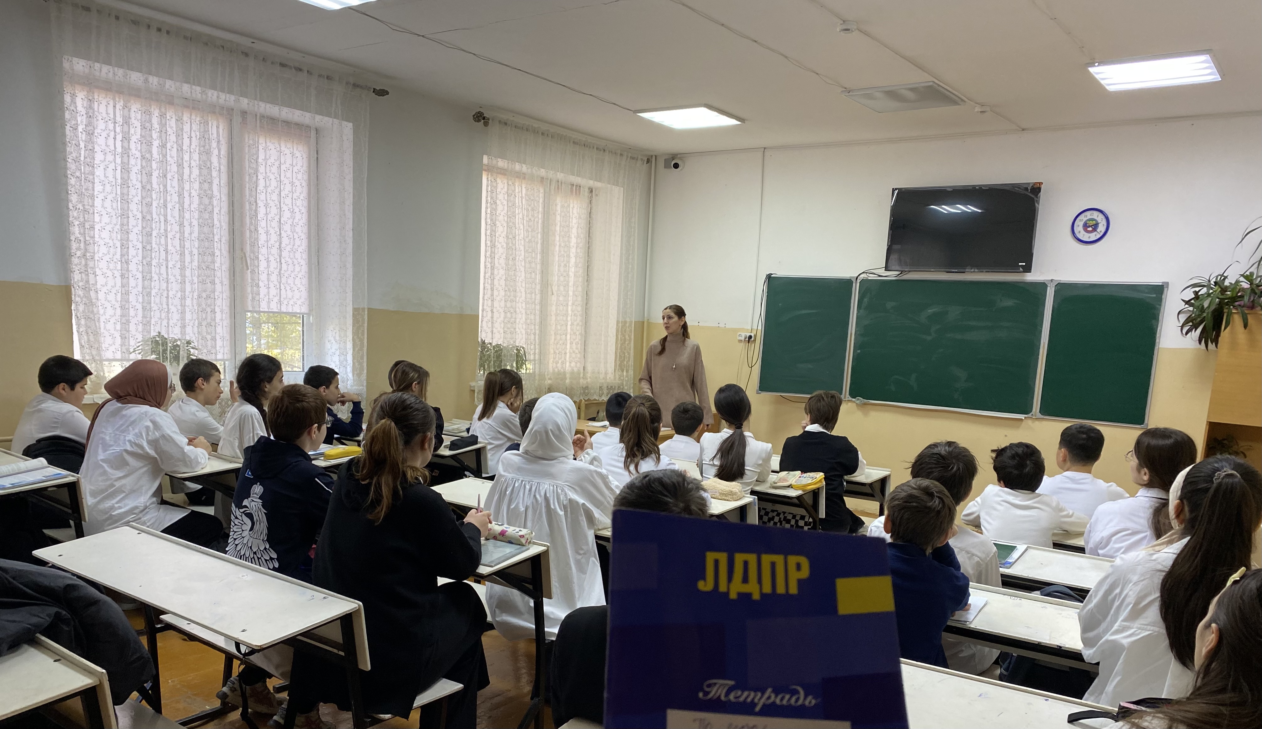 Координатор Советского местного отделения ПП ЛДПР Эльза Бегеева и активисты партии провели беседу на тему: «Имею право, но обязан» с учениками СОШ 50 и СОШ 29