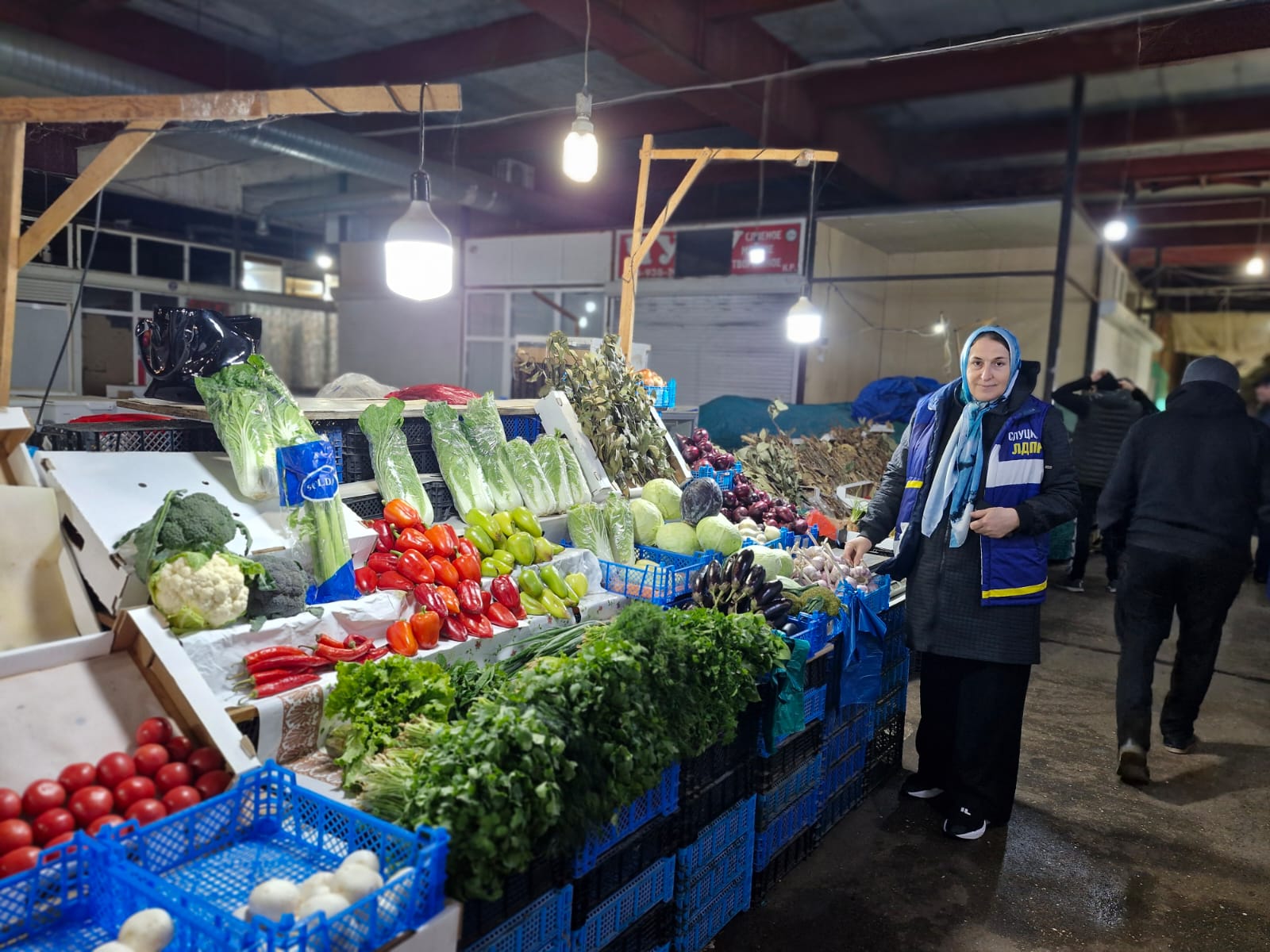 Координатор Махачкалинского местного отделения ПП ЛДПР Райсат Абдулаева посетила 2-й рынок города Махачкалы, где провела мониторинг цен на фрукты и овощи