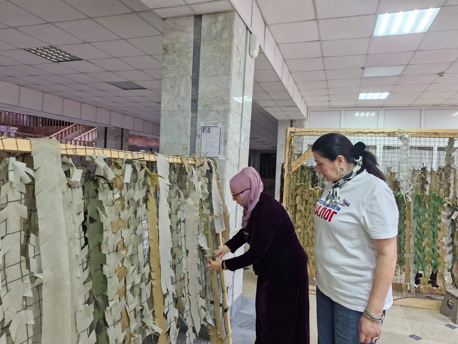 Напомним, что работа по изготовлению маскировочных сетей для нужд Специальной военной операции в Махачкале ведется с лета 2024 года в специально выделенном помещении Национальной библиотеки Республики Дагестан имени Расула Гамзатова и не прекращается ни на один день.