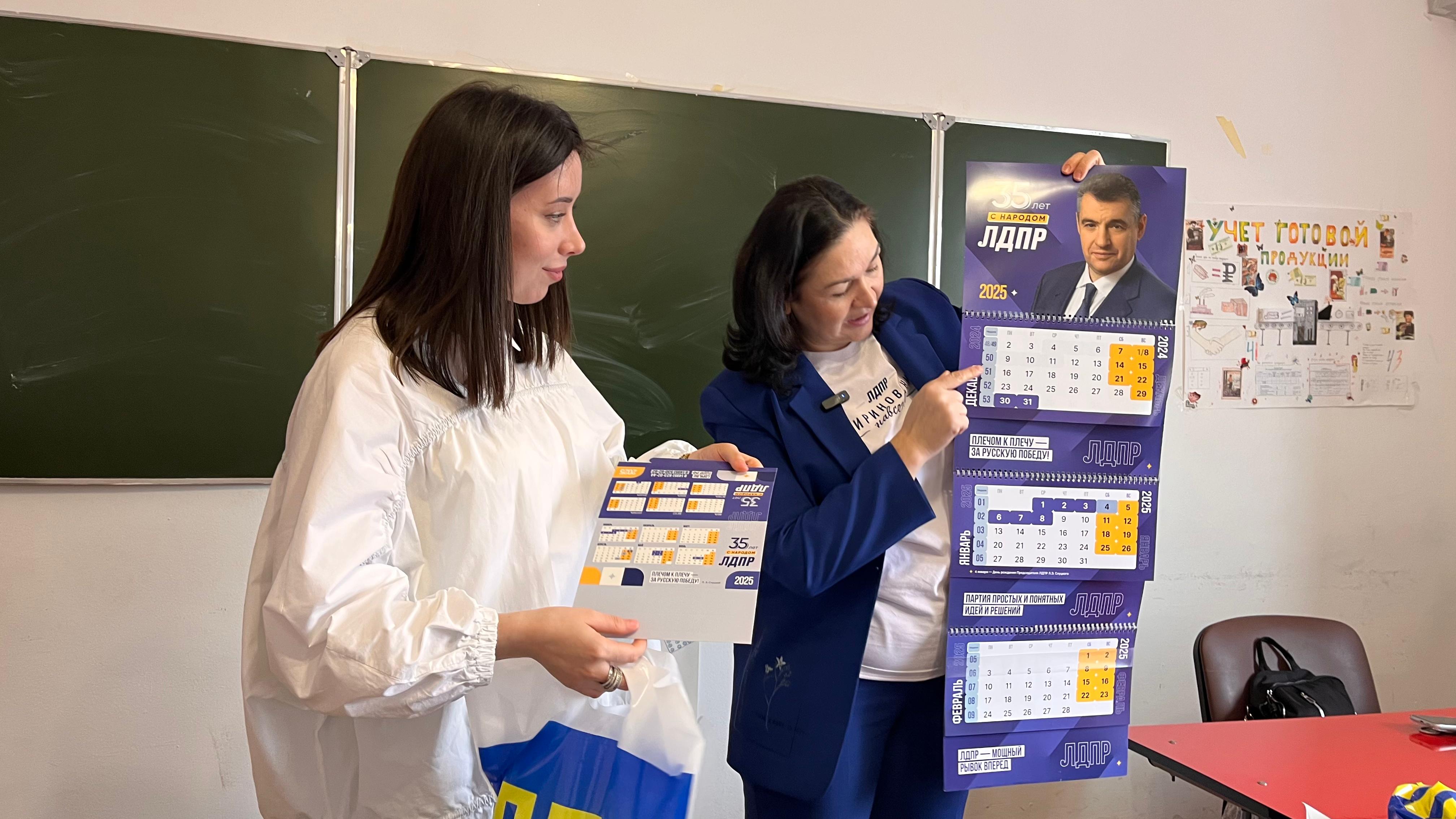 Все остальные учащиеся получили в качестве подарков к празднику тетради и ручки с символикой партии.