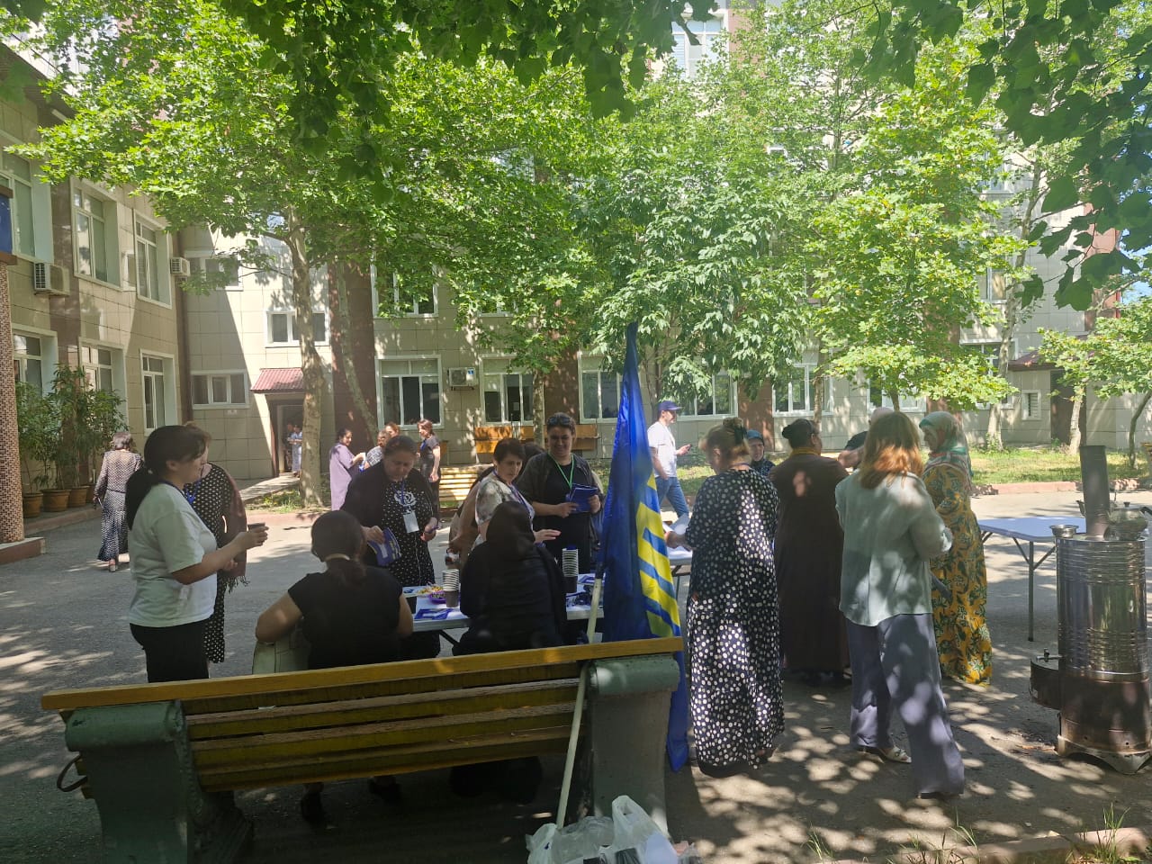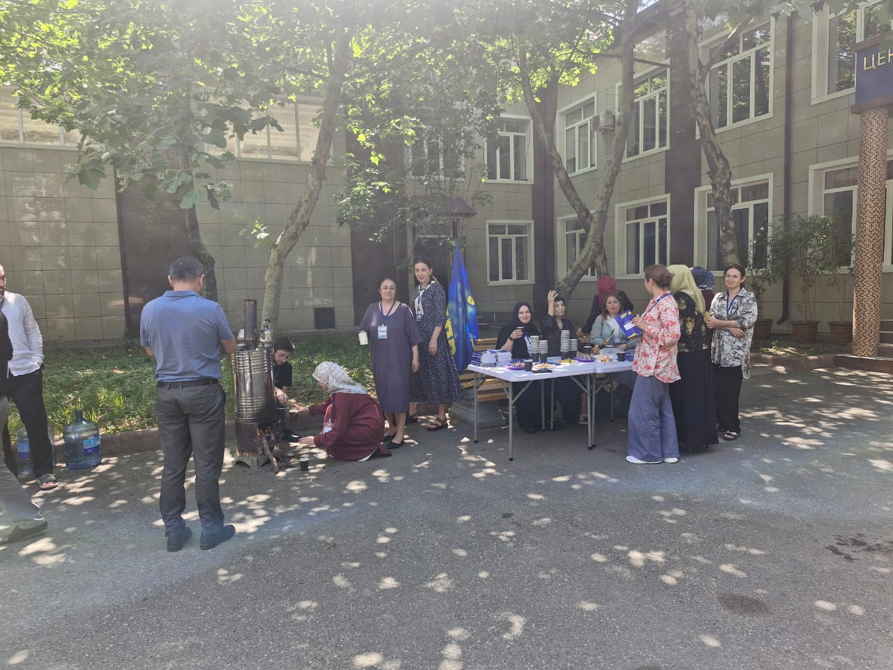 Дагестанское региональное отделение ЛДПР сегодня, 13 июня, в обеденный перерыв организовало во дворе Дагестанского института развития образования чаепитие для экспертов, которые проверяют экзаменационные работы участников ОГЭ.
