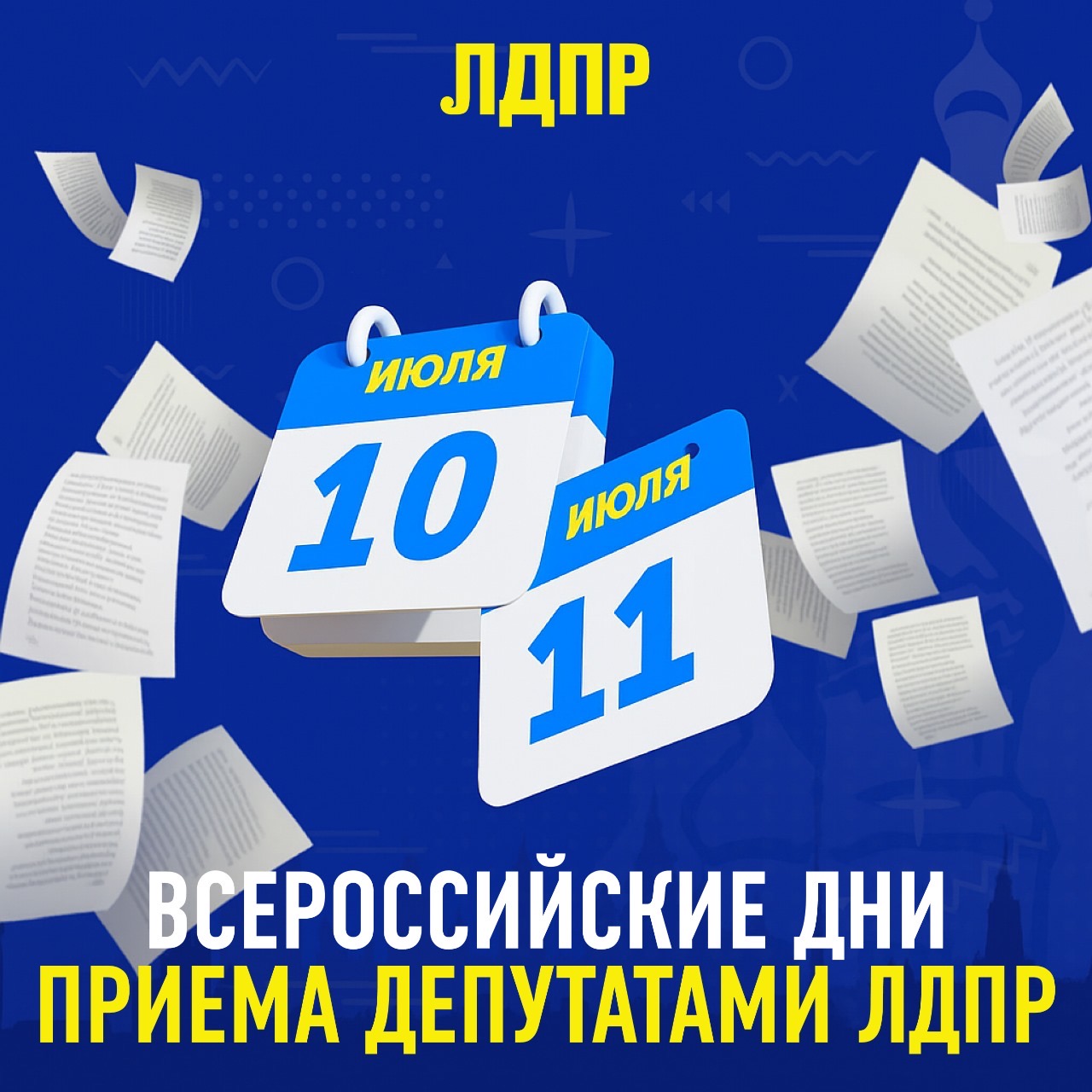 Приглашаем вас к нам 10-11 июля 2025 года. Депутаты ЛДПР проведут очередной Всероссийский приём граждан.