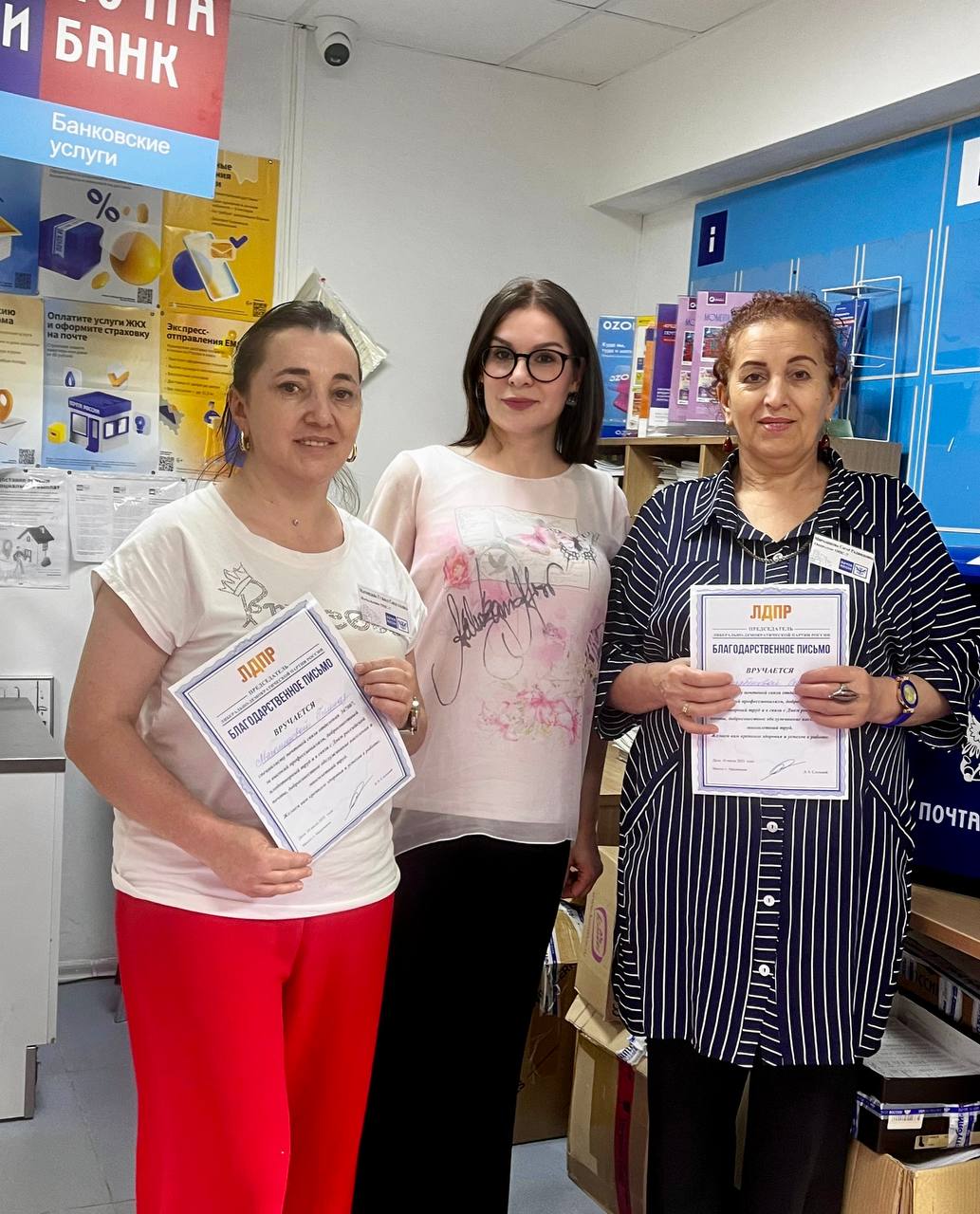 Все это было бы невозможно, если бы не высоко профессиональный труд, знания и опыт, отвественность всего коллектива почтовиков. «Поздравляю с Днем российской почты. Желаю каждый день радовать всех добрыми вестями, долгожданными письмами, счастливыми телеграммами, интересными посылками и просто теплыми словами»,- поздравила работников координатор и вручила от партии ЛДПР благодарственные письма.