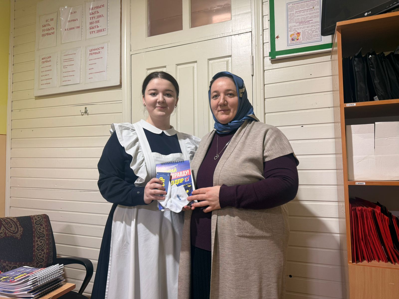 Активисты Кизилюртовского местного отделения ЛДПР поздравили педагогов Новочиркейской школы №1 с 8 марта
