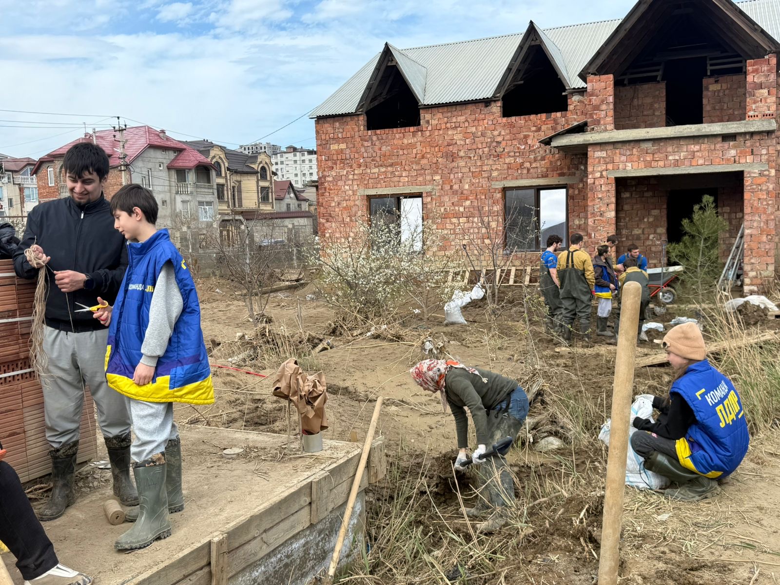Активисты вместе со сторонниками партии не только навели порядок во дворе дома, убрали грязь и мусор, оставленные большой водой, но и взялись за более масштабную задачу. Участники субботника соорудили временную дамбу, чтобы в будущем защитить двор от повторных подтоплений.