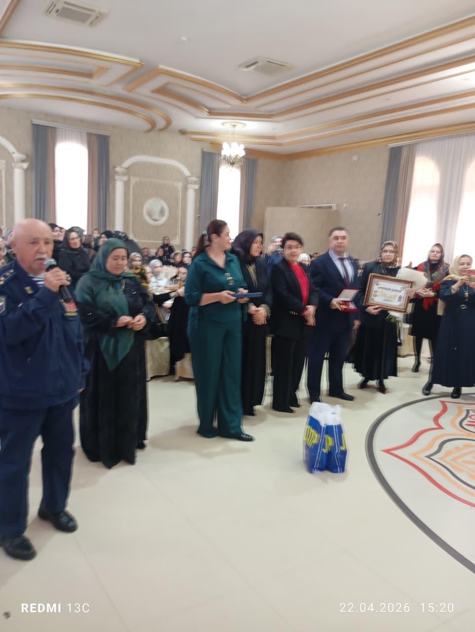 От Дагестанского отделения ЛДПР молодоженов приехала поздравить заместитель координатора Мадина Ибрагимова. Она вручила маме героя Кистаман Гитиновой от имени председателя партии Леонида Слуцкого медаль «Мать солдата», учрежденную ЛДПР. Мадина Ибрагимова выразила матери героя слова признательности за воспитание настоящего защитника Отечества и пожелала ей крепости духа и долгих лет жизни. Также она преподнесла молодым и матери невесты ценные подарки — книги о Дагестане.