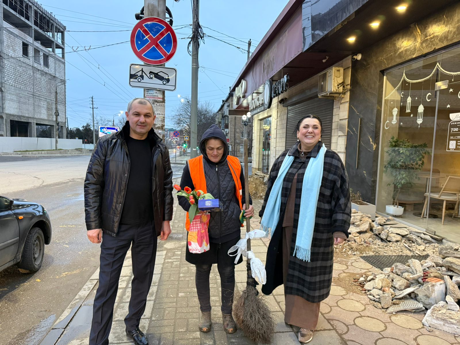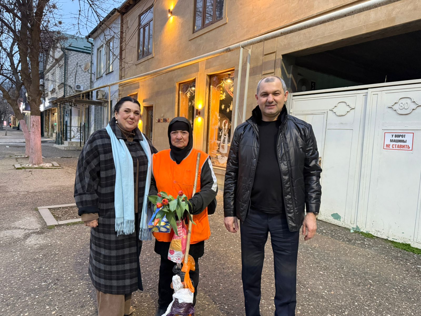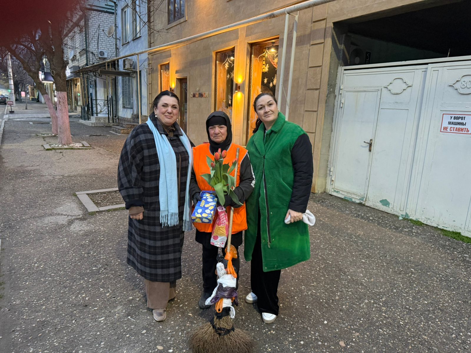 Мурад Мутаев, Мадина Ибрагимова и Хасайбат Валиева на рассвете поздравили сотрудниц службы благоустройства Махачкалы