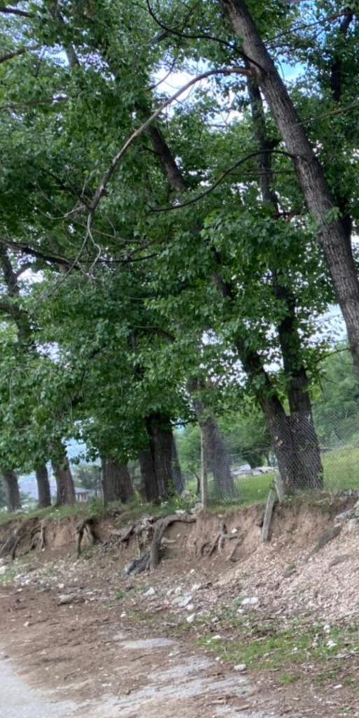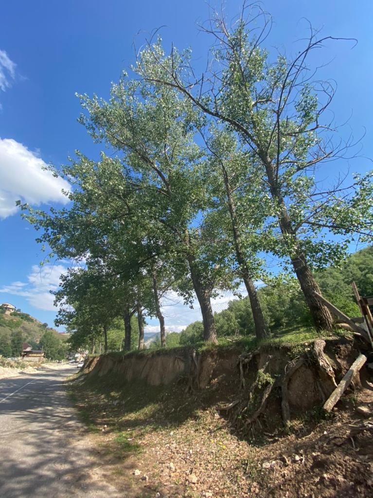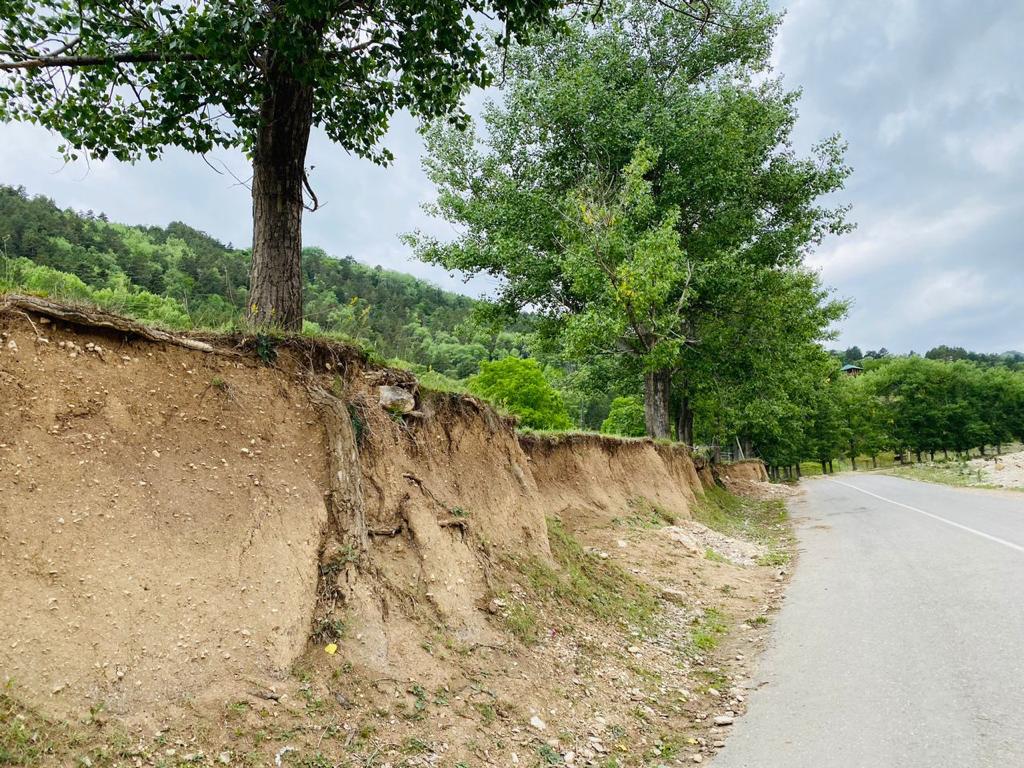 Однако в связи с тем, что дорога расположена несколько ниже аллеи, вследствие эрозии почвы и многолетних вымываний ливнями вдоль аллеи образовался стихийный обрыв высотой от полутора до трех метров. В последние годы граница обрыва сместилась в сторону аллеи так, что сегодня корни деревьев оголились. И есть большая вероятность того, что эта аллея до следующего года не сохранится, деревья попросту упадут на дорогу.