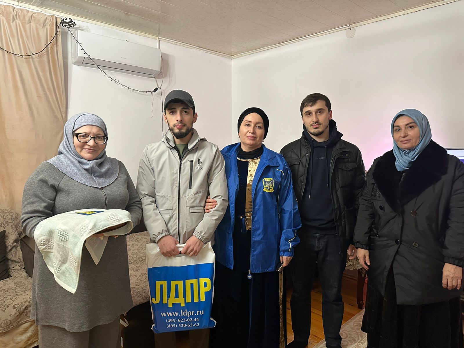 Депутат Хасавюртовского городского собрания от ЛДПР Жанна Салиева посетила семьи участников СВО, проходящих реабилитацию после ранений, и угостила их пирогами «ЛДПР».