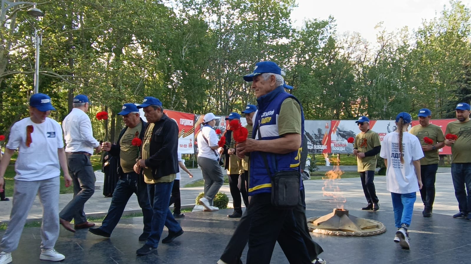 В Махачкале, в Парке им. Ленинского комсомола, активисты дагестанского отделения ЛДПР возложили цветы к Вечному огню в честь Дня Победы.